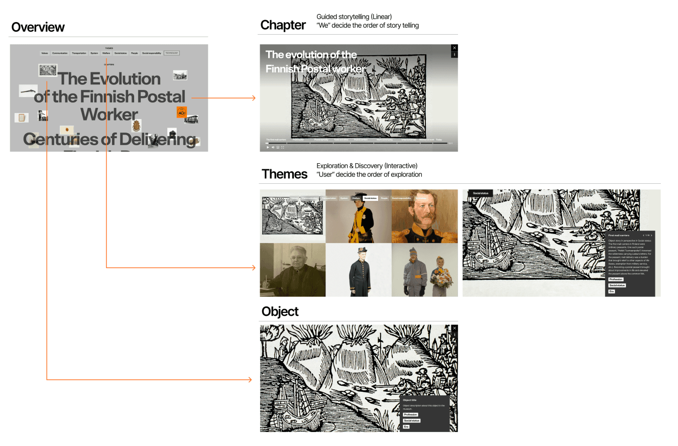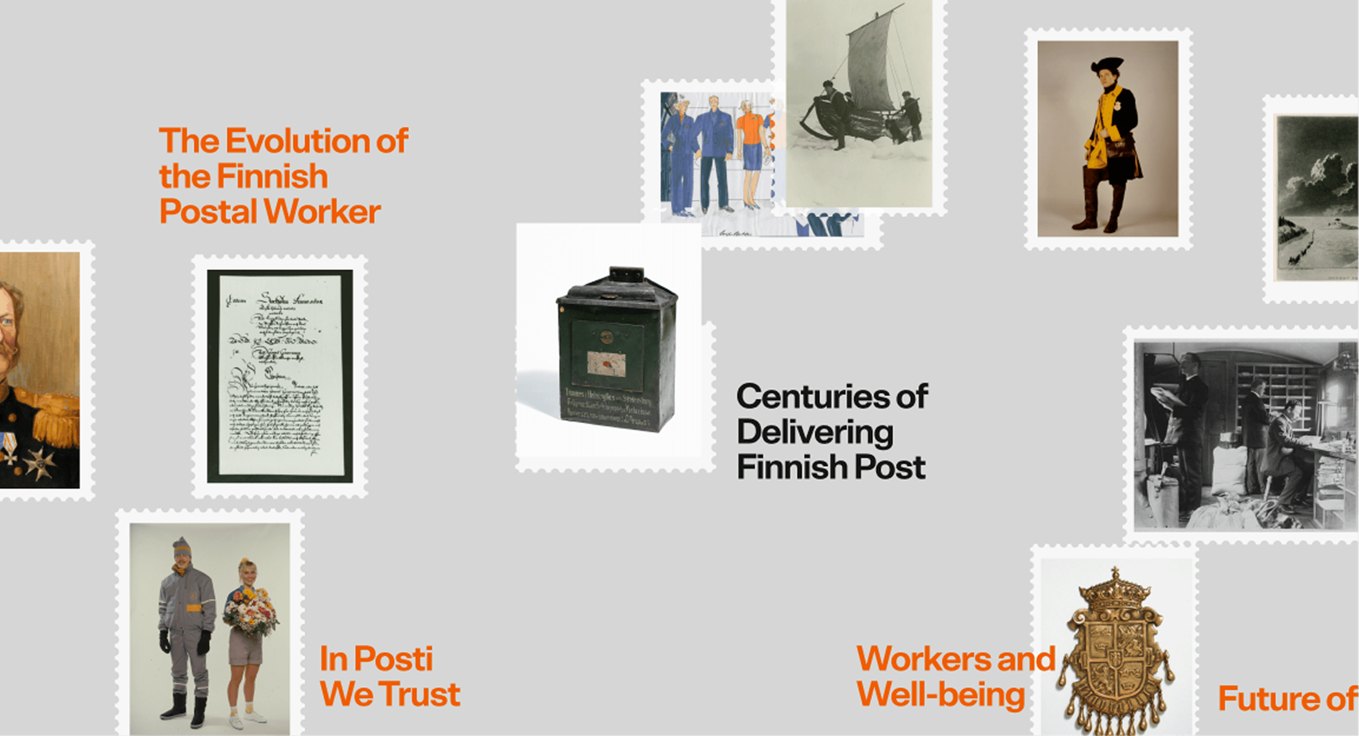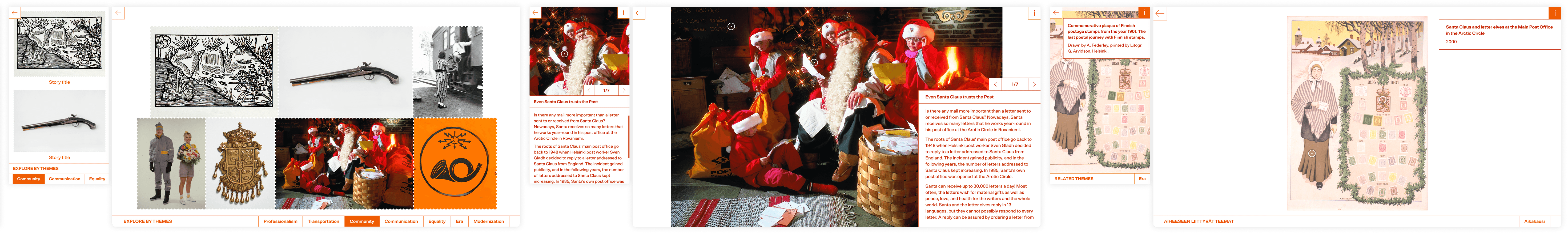 To celebrate the 380 year anniversary, Finnish Postal Museum had a vision to present their history through stories accompanied by historical images. The goal of the project was to tell stories in an interactive and visual way, allowing visitors to explore and immerse.