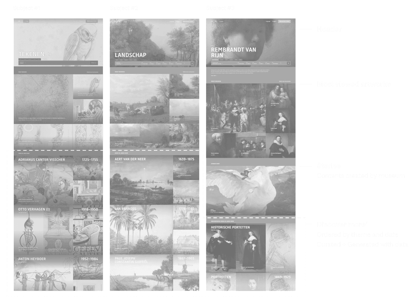 These pages were a balance between curatorial narratives from the museum and data-generated groupings.