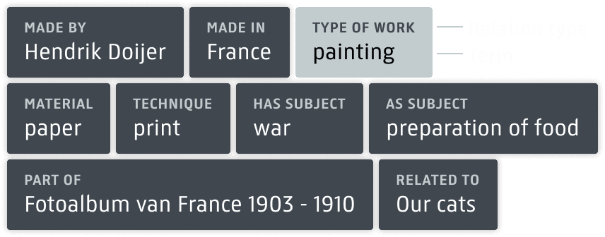 Filterable attributes are paired with their relation types, exposing the underlying data structure and helping users understand how artworks are connected.